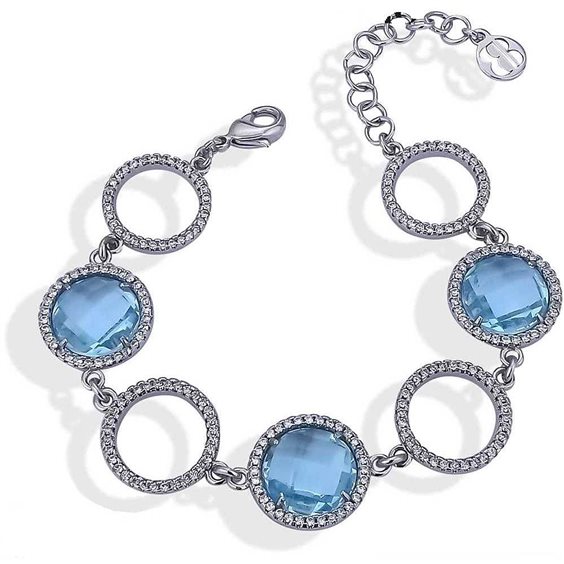 Bracciale Da Donna Di Boccadamo Della Collezione Sharada Della Linea Mediterranea. Bracciale In Bronzo Con Decoro Composto Da Moduli Circolari Di Zirconi Alternati A Cristalli Briolette Color Acquamarina E Zirconi. Materiale: Bronzo. Produzione: Realizzato In Italia. Misura: Cm 16,5 Estendibile Fino A Cm 20. Dimensione: Diametro Cristallo Cm 1,5. Chiusura: Con Moschettone