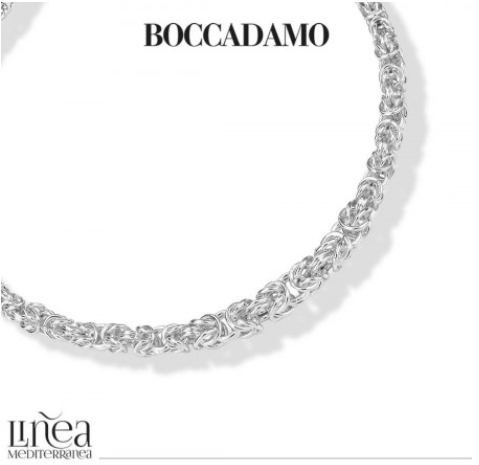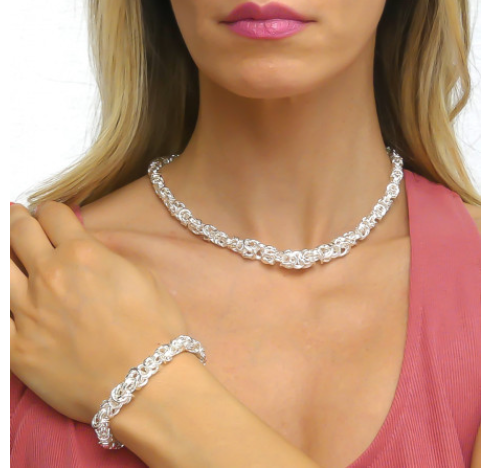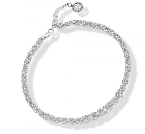 Girocollo maglia bizantina in bronzo argentato. Lunghezza regolabile da cm. 42 a cm. 47. Chiusura con moschettone.