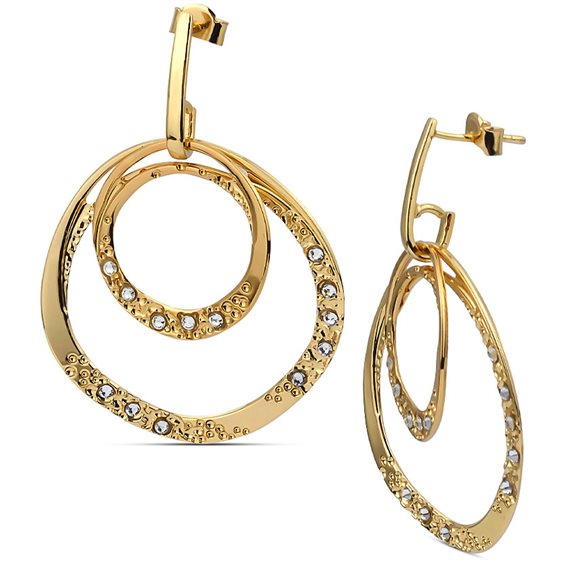 Orecchini Da Donna Di Boccadamo Della Linea Mediterranea Della Collezione Magic Circle. Orecchini Doppio Cerchio Placcato Oro Giallo Dall'Effetto Diamantato E Cristalli Crystal. Gioiello Realizzato In Bronzo, Misura: Lunghezza Cm 5,5. Dimensione: Diametro Cm 4 E Chiusura A Farfalla