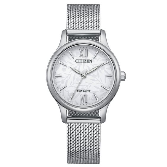 Orologio donna solo tempo Collezione LADY. Cassa in acciaio lucido. Movimento Eco-Drive a carica luce con riserva di carica di 8 mesi. Quadrante bianco con motivi floreali indici e lancette lucide oro. Vetro minerale bordato lucido. Bracciale regolabile maglia Milano in acciaio, chiusura a gioiello. Impermeabile 5 bar (5 atm). Scatola Libretto istruzioni e garanzia 2 anni originali.