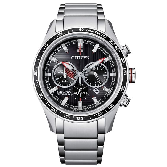 Orologio cronografo da uomo della collezione Super Titanio Sport con cassa in Super Titanio del diametro di 42 mm. ghiera nera con scala tachimetrica , fondo serrato a vite. Quadrante nero con datario e lancette luminose. Vetro zaffiro. Bracciale regolabile in Super Titanio, chiusura deployante con pulsanti. Movimento Eco-Drive ( a carica luce) con riserva di carica di 270 giorni. Cronografo a 1/5 di sec. Impermeabile 10 atmosfere.