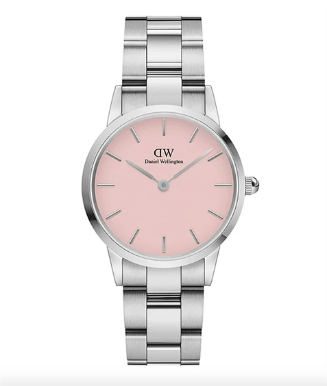 Orologio solo tempo da donna di Daniel Wellington della collezione iconic link pastel. Orologio con cassa rotonda realizzata in acciaio di colore argento e di diametro 28 mm. Il quadrante è di colore rosa e il cinturino è realizzato in acciaio di colore argento con chiusura deployante. Il movimento è al quarzo e la resistenza all'acqua è di 3 atm.