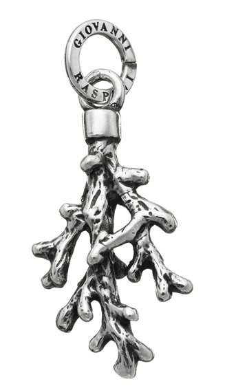 Charm Corallo. Altezza cm.3 (esclusa maglina di cm.0,90).