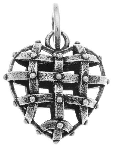 Il charm rappresenta una gabbia a forma di cuore, munito di maglina con logo Giovanni Raspini.