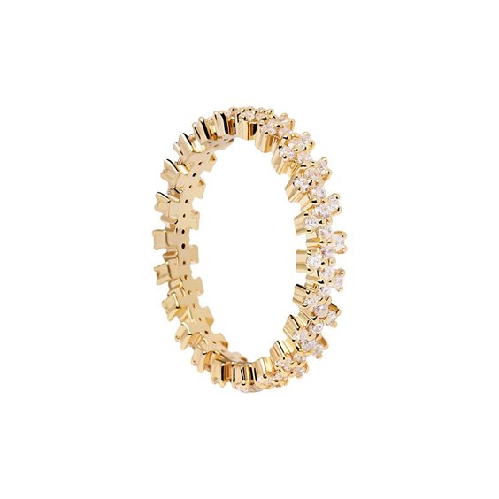 Anello da donna PDPaola collezione Essentials linea Crown in argento 925% placcato oro 18 Kt con zirconi bianchi. Misura 14.