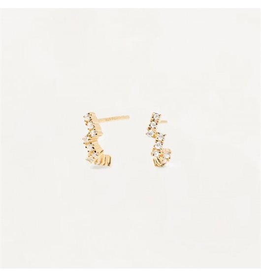 Orecchini a lobo realizzati in argento 925% con finitura in oro 18kt e impreziositi da zirconi bianchi dal diametro di 1 mm. Hanno lunghezza totale di 1 cm e peso di circa 1,42 g.