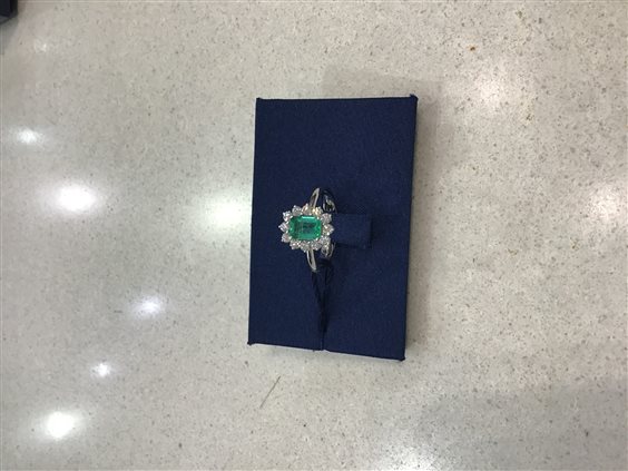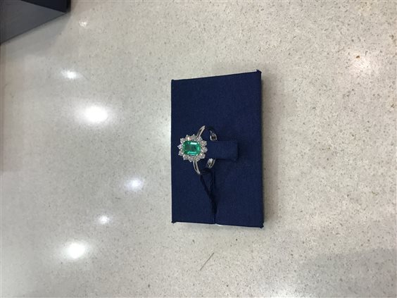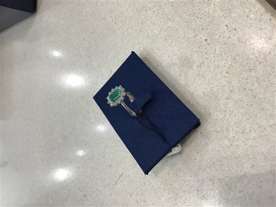Anello in oro bianco 18 kt con Smeraldo centrale (caratura 0,80) e diamanti (caratura 0,49)
