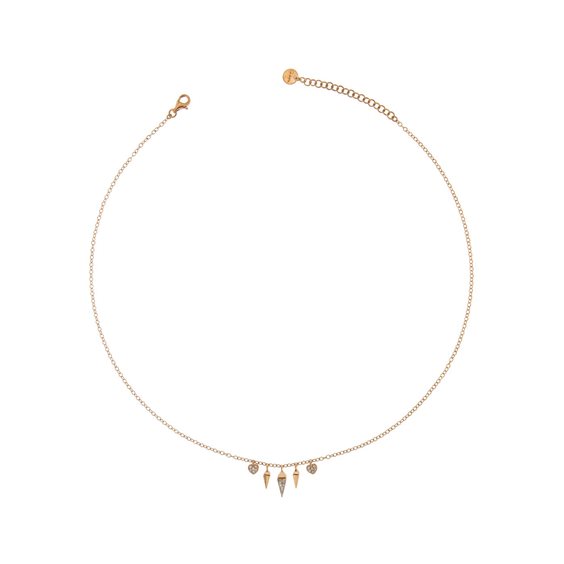Girocollo Lance Pendenti Finitura disponibile: Placcatura oro rosa 18kt o placcatura oro giallo 18kt Materiale: Argento 925 e Zirconi Bianchi Taglia: Unica, 39 cm + 5 cm