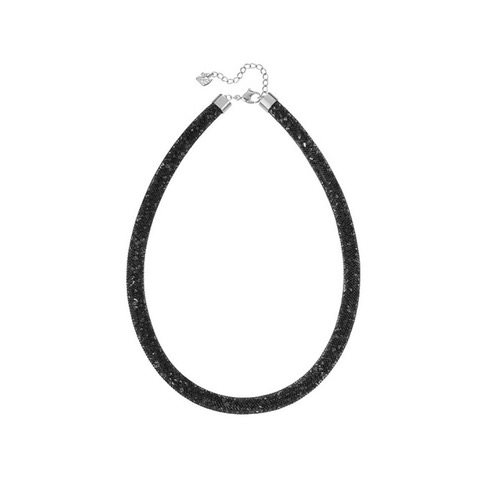 Collana composta da un tubolare di nylon che trattiene una miriade di cristalli neri e bianchi, definisce un insolito profilo 3D. Una chiusura a moschettone palladiata regolabile completa il gioiello.
