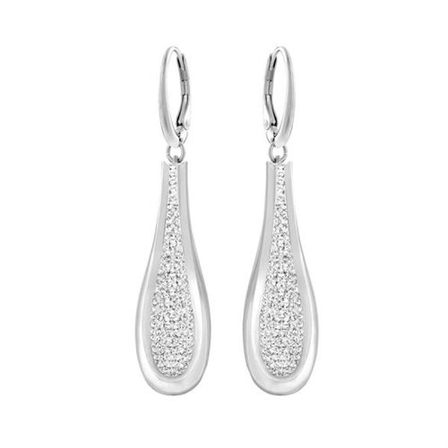 Shining in lisce, in metallo placcato al rodio, il ciclo orecchini sono un must-have goccia silhouette. la parte centrale di ogni orecchino sparkles bellissimo set con cristalli trasparenti Swarovski's exclusive Pointiage ® technique. orecchini sono venduti come pair. lunghezza: 5 cm