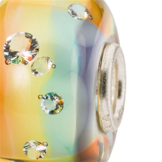 Diamante Arcobaleno -limited edition-. I colori sono il sorriso della felicità. "I diamanti sono i migliori amici di una donna", cantava Marilyn Monroe. Il fascino dei diamanti è indiscusso ed in questo cristallo sono incastonati 13 zirconi cubici. Il beads è foderato con delicate sfumature color arcobaleno. I beads in vetro sono prodotti artigianalmente e possono differire l'uno dall'altro per forma, colore e grandezza. Questa diversità è ciò che li rende unici, autentici e non rappresenta un difetto di produzione. L'immagine ha il solo scopo di illustrare il prodotto.