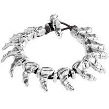 Bracciale in cuoio con inserti pendenti in acciaio rivestito in argento. Disponibile con scatola e garanzia originale.