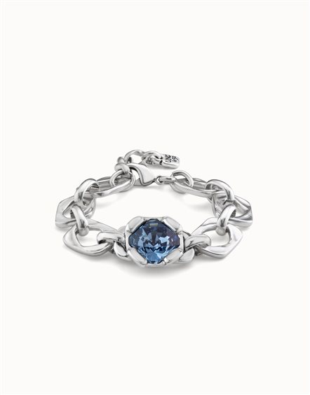 BRACCIALE A MAGLIE IN ARGENTO CON CRISTALLO SFACCETTATO CHARISMATIC||La collezione Charismatic rappresenta la capacità di attrarre, affascinare e influenzare ciò che ci circonda, cosa che si può ottenere solo in modo naturale. Ciò trova espressione in questo bracciale a maglie con un cristallo blu sfaccettato al centro. Chiusura a moschettone e catena estensibile per regolare il bracciale sulla misura desiderata.||Gioielli Made in Spain, realizzati al 100% a mano, per ottenere una finitura dal design unico.